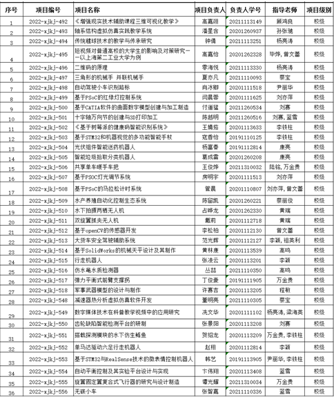 为改革人才培养模式,强化创新创业能力训练,增强学生的创新能力和创业能力,工程训练中心于2021年12月启动申报“2022年度市级大学生创新项目”与“2022年度校级大学生创新项目”,共收到项目申请65项。其中市级大学生创新项目29项,校级大学生创新项目36项。申请教师共计22位,实现占比67%的教师参与,通过项目促进提升教师的业务能力。