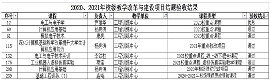 验收结果为:尹丽华老师负责的2020校级重点课程“电工与电子学”被评为“优秀”,其余7个项目被评为“通过”。