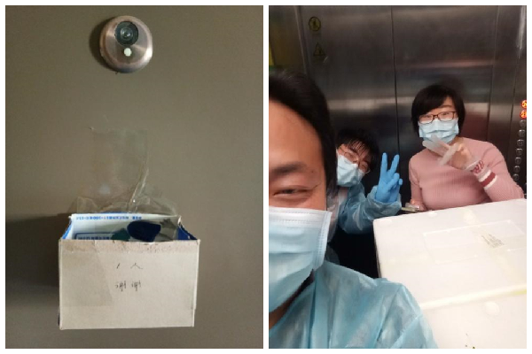 比如有的门洞前的物资显然没有“动弹”,若本人不在,联系本人并同意后,物资回收分发给需要的人。